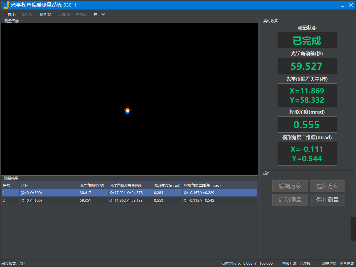Real-time Deviation Calculation: The software instantly calculates the wedge angle based on the separation of the reflected spots.